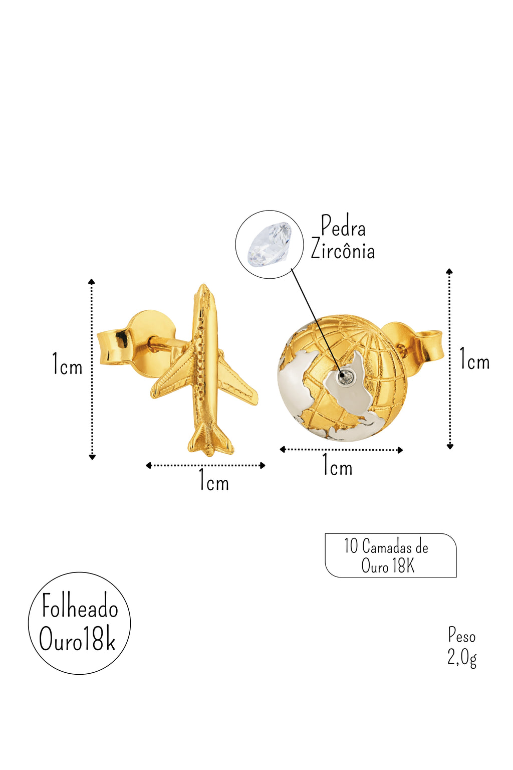 • Tamanho do brinco avião: 1cm