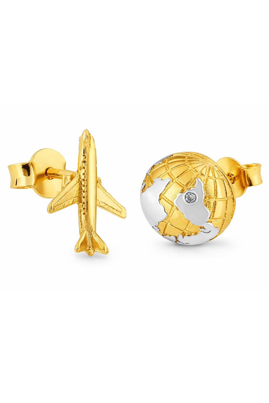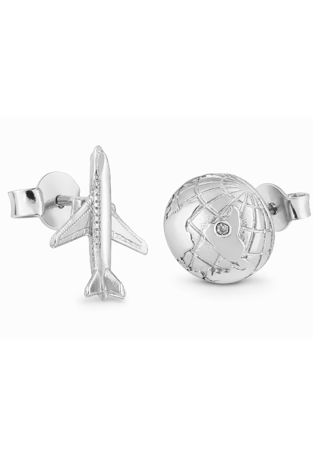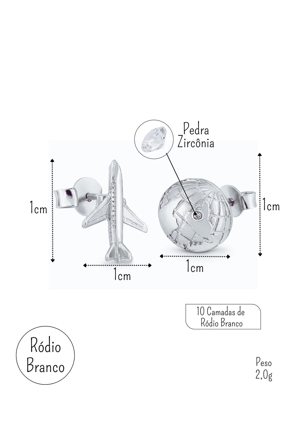 O banho em ródio branco garante brilho intenso, acabamento refinado e maior durabilidade, valorizando os detalhes dos brincos. O conjunto traz dois símbolos icônicos da coleção: o brinco em forma de avião de 1cm, que representa descobertas e novos caminhos, e o brinco em forma de globo de 1cm, que simboliza conexão, liberdade e o desejo de explorar o mundo.