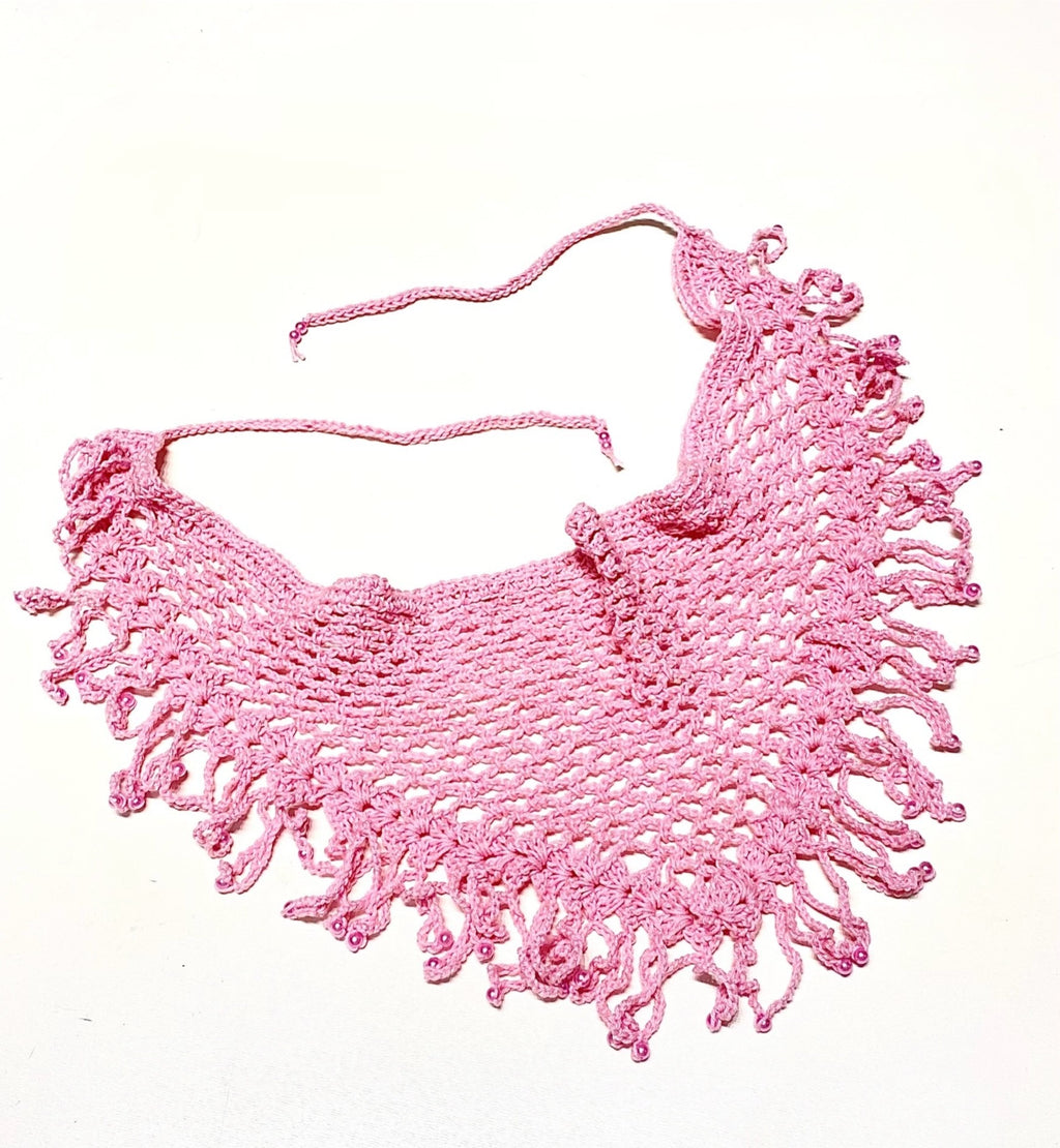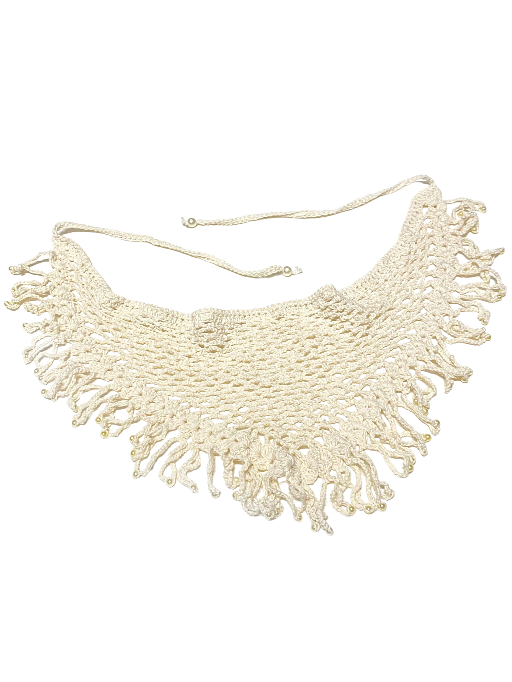 Bandana de crochê artesanal com Franja, com trama aberta e acabamento delicado.