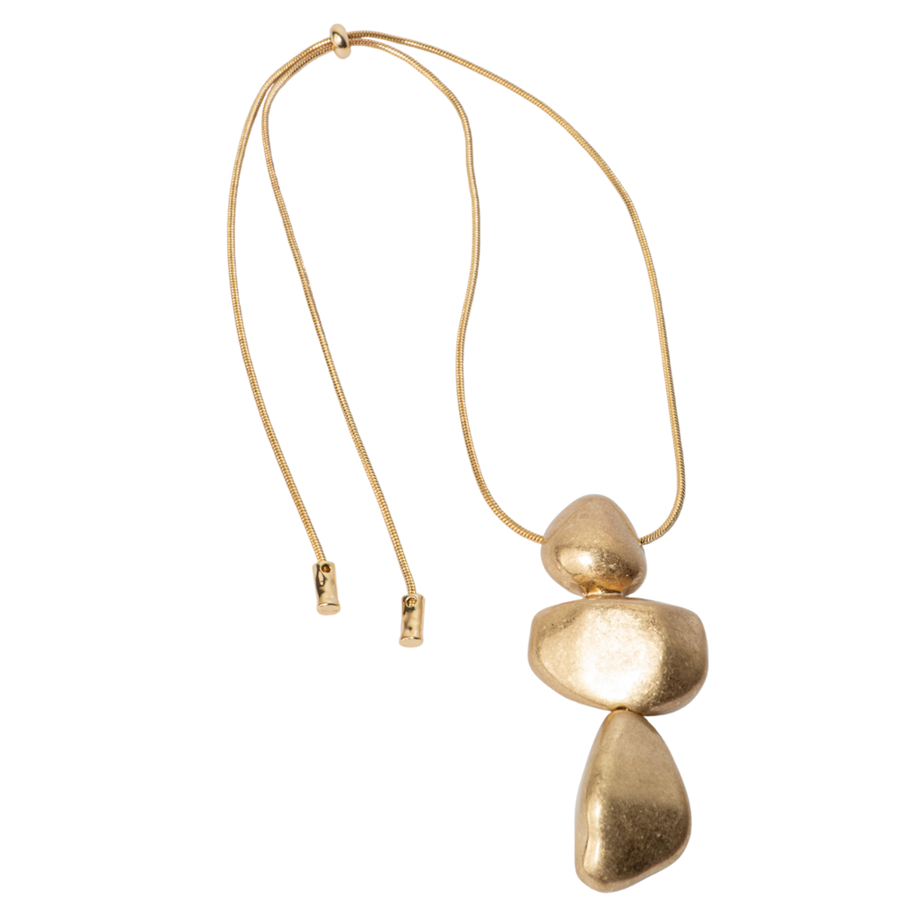 Colar com elementos orgânicos em acabamento fosco e desenho escultural.