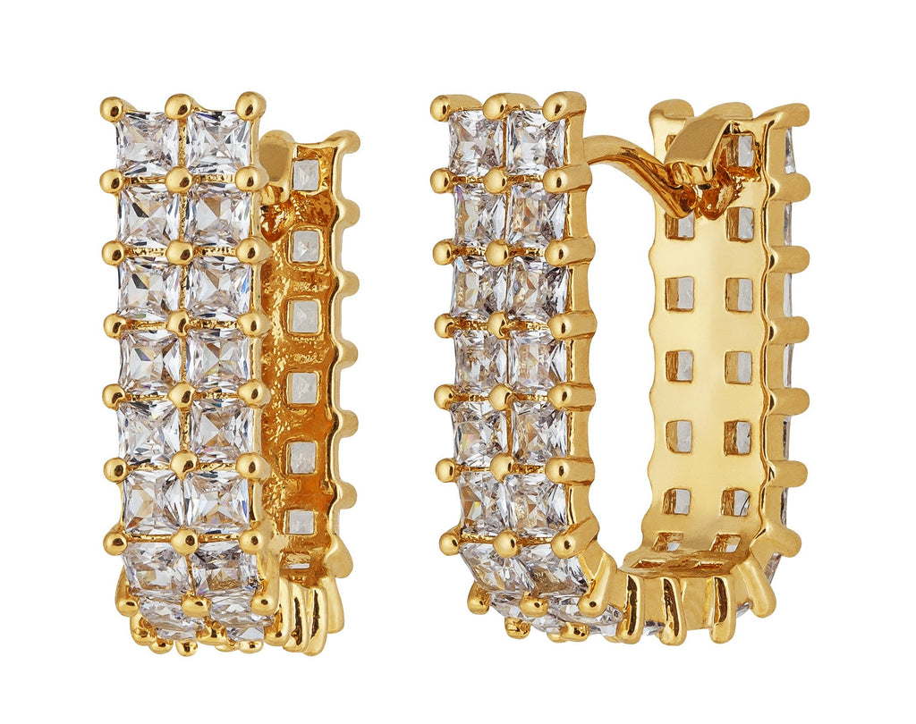 Brinco argola retangular com acabamento brilhante e banho de ouro ou Ródio Branco .