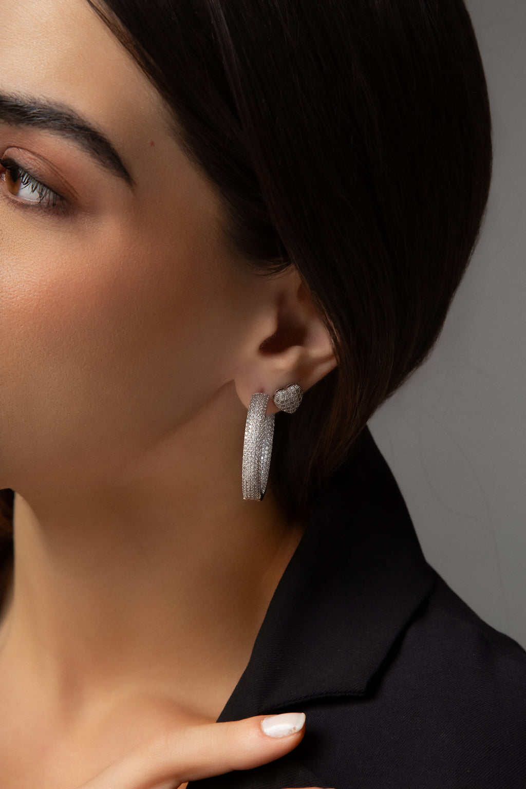 Brinco de argola com cravação delicada e banho Ouro 18K ou Ródio Branco.