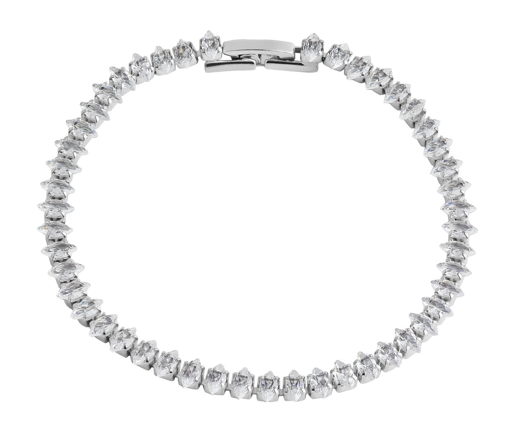 Pulseira estilo riviera com zircônias de lapidação diamantada, cravejadas de forma contínua para um brilho intenso e elegante em toda a extensão da peça.